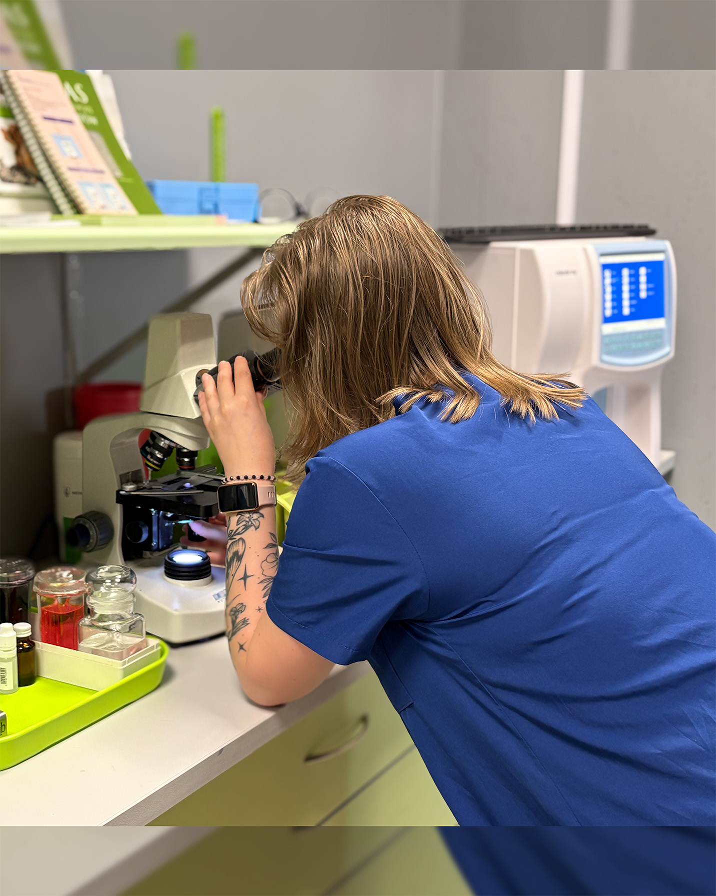 Wizyta rozpoczyna się od wywiadu z opiekunem i badania klinicznego. Następnie pobieramy krew i przekazujemy ją do specjalistycznego laboratorium. Po uzyskaniu wyników (zazwyczaj 7-14 dni) opracowujemy indywidualny plan terapii.